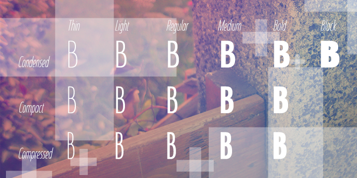 Coegit is built specifically for web applications. Its highly condensed forms range from thin--offering the greatest number of uses--to the attractive, accenting black. With three widths--Compressed, Compact, and the widest, Condensed--the family holds a total of sixteen fonts. The typefamily has also been hinted for excellent, onscreen display quality, even at small sizes. Overall, its lighter, humanist features provide the reader a more congenial welcome than its square, sans-serif counterparts can offer.