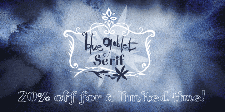 Blue Goblet Serif is great choice for display and short blocks of display text, children's books, packaging, or other unique applications. Fill in the counter spaces with color for a unique look, or alternate the different weights. Use Blue Goblet whenever you want to inject a sense of fun and whimsy to your designs. Give the Blue Goblet series a try today!