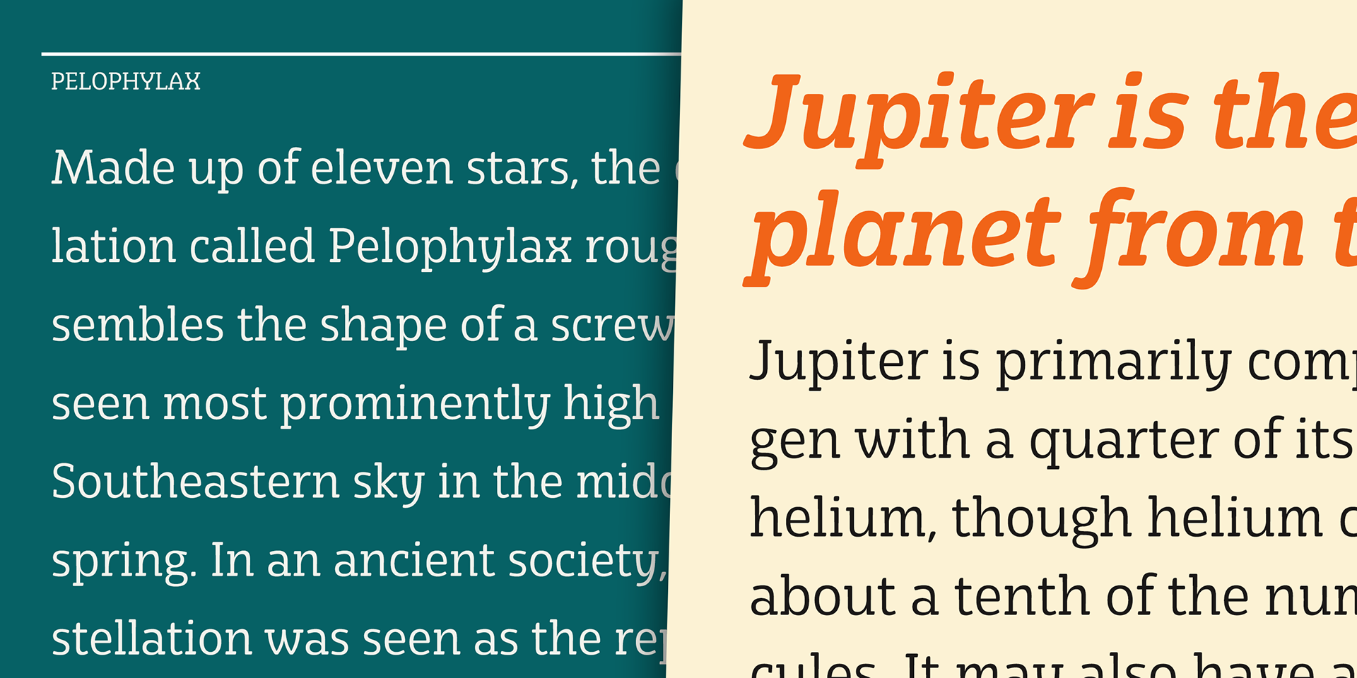 But that's not all, Eigerdals Slab comes loaded with practical OpenType features like ligatures, unicase alternates, and a set of upright italic swash alternates, that can be fully utilized in software like Quark and Adobe suite. Not only that, it also includes support for a wide range of languages.