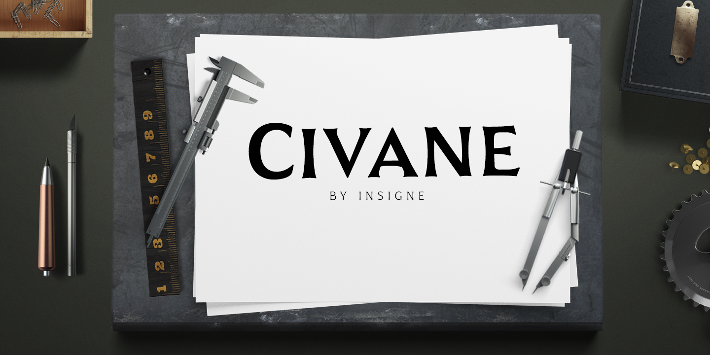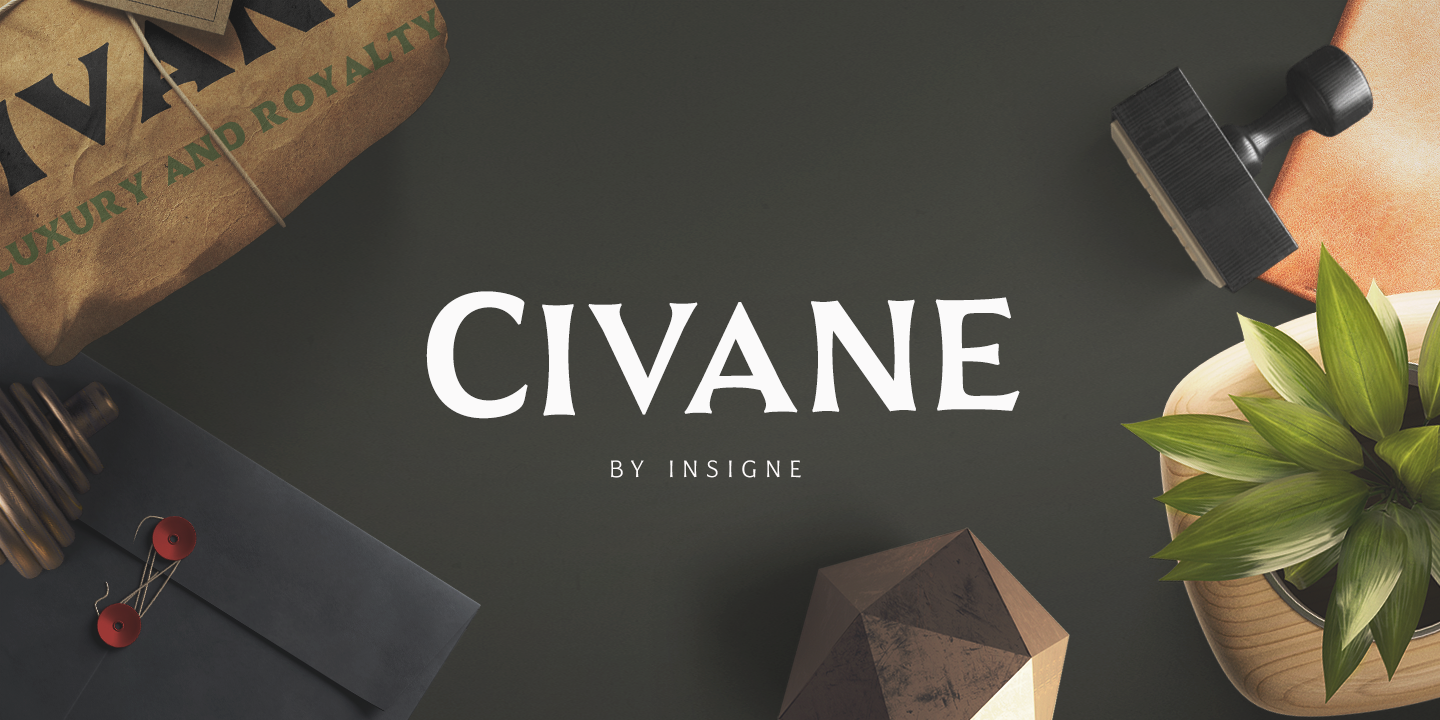 High atop the mountain of fonts, a new structure has been raised--one solid and strong against the challenges of time. Civane is a victorious conqueror among fonts, standing above the clutter and the mundane. Its firm structure joins effortlessly with graceful calligraphy in a new flowing, inscriptional typeface.