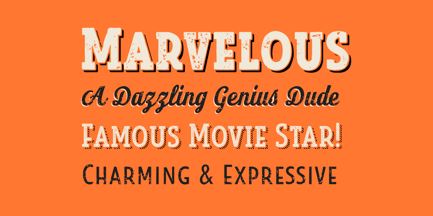 Each of the individual sub-families incorporates a variety of font weights with distressed attributes. Think Woodtype. Jeans. Antiques, folks. That deep, ingrained texture--that quality that will stand the test of time.
