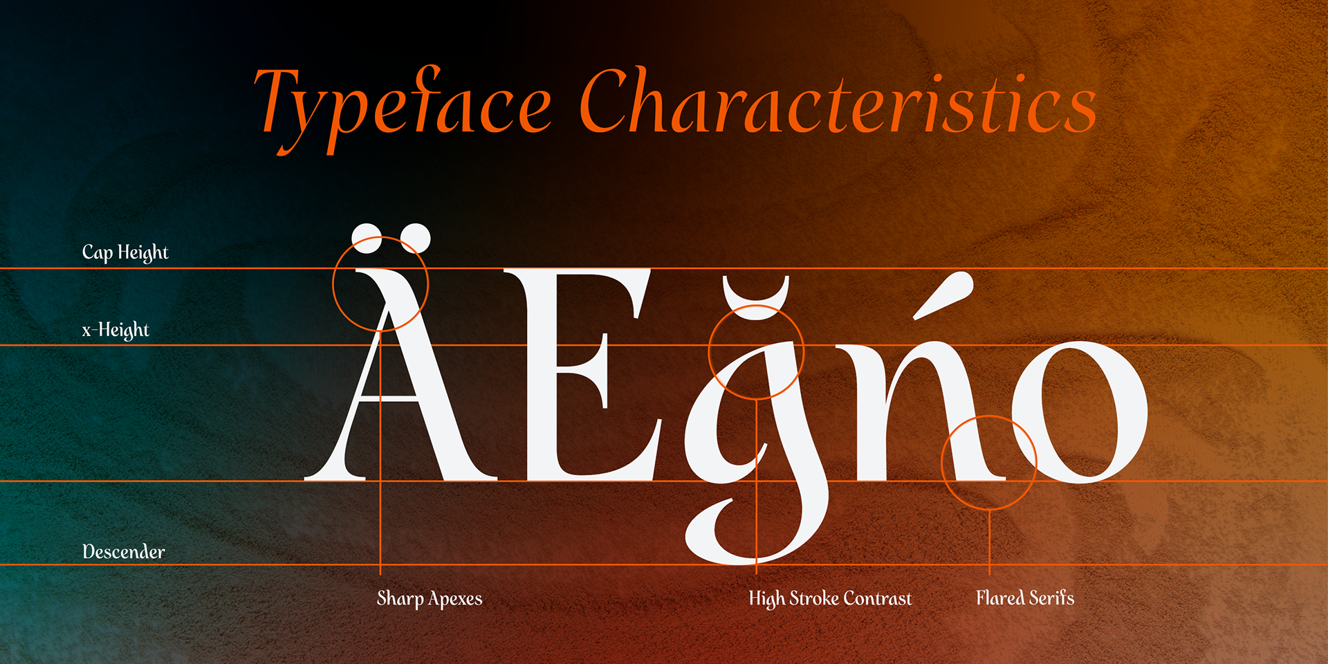 This font family, which includes eight weights, is ideal for producing brief texts for editorial, fashion, branding, magazine, television, window displays, and other media applications. Small caps, old-style figures, and width variations are also included. It's ideal for writing brief sentences because of the increased x-height.